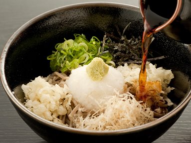Oroshionsoba 1,100yenSoba noodles with grated radish, onions and bits of fried batter. Squeeze in lemon juice before eating.