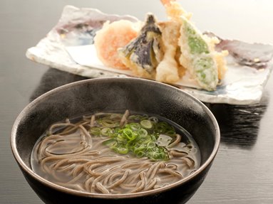 Tempurasoba 1,300yenTop the soba noodles with tempura made from shrimp and vegetables picked in our own vegetable garden.